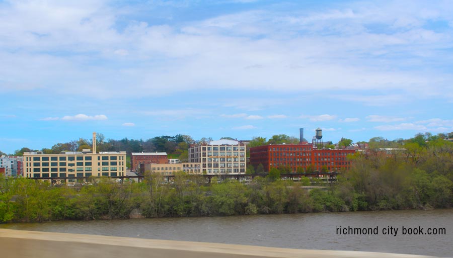 View of Richmond along the waterfront from the James River Bridge (I-95)