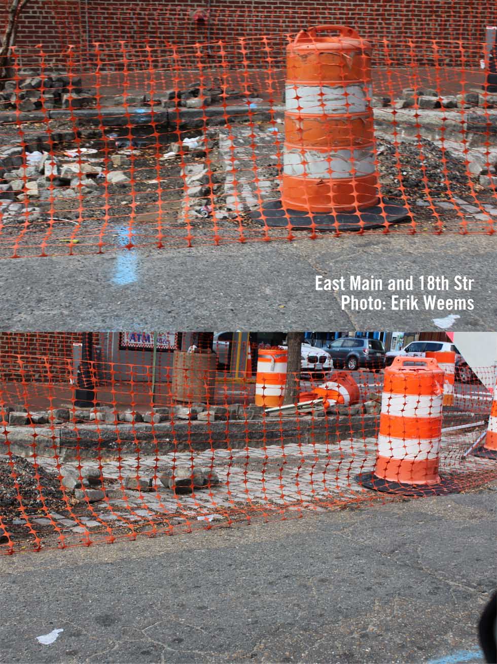 Dug up Cobblestones on 18th Street where it meets East Main - Nov 2018